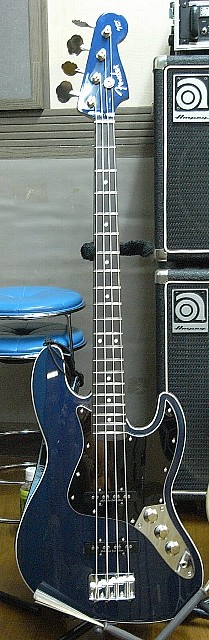 2007年6月、修行後に楽器屋に立ち寄ったところ、ミディアムスケールのジャズベースを発見。試奏したところ非常に弾きやすく、ガンメタリックの塗装も美しかったため、ほとんど買う気になったがその日はおとなしく帰宅。メールで求道メンバーに相談し、納得のうえ後日購入されたもの。正しい購買行動であると言えよう。 愛称は「メタ蔵」。 |